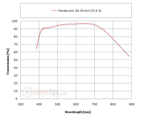 ! W2 s/ z9 D B/ p1 |(图一) D800/NEX-5 机身内的滤镜大约从波长550nm开始阻挡光线(穿透率下降),到了700nm之后的光线几乎无法通过。 下图(二) 蓝色区块即为D800低通滤镜与超音波除尘滤镜允许通过的光线波长及穿透率。 ! X) e8 u4 C3 \( P' X/ s1 b9 m